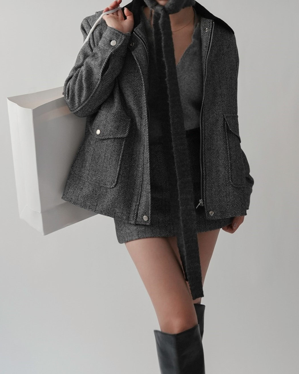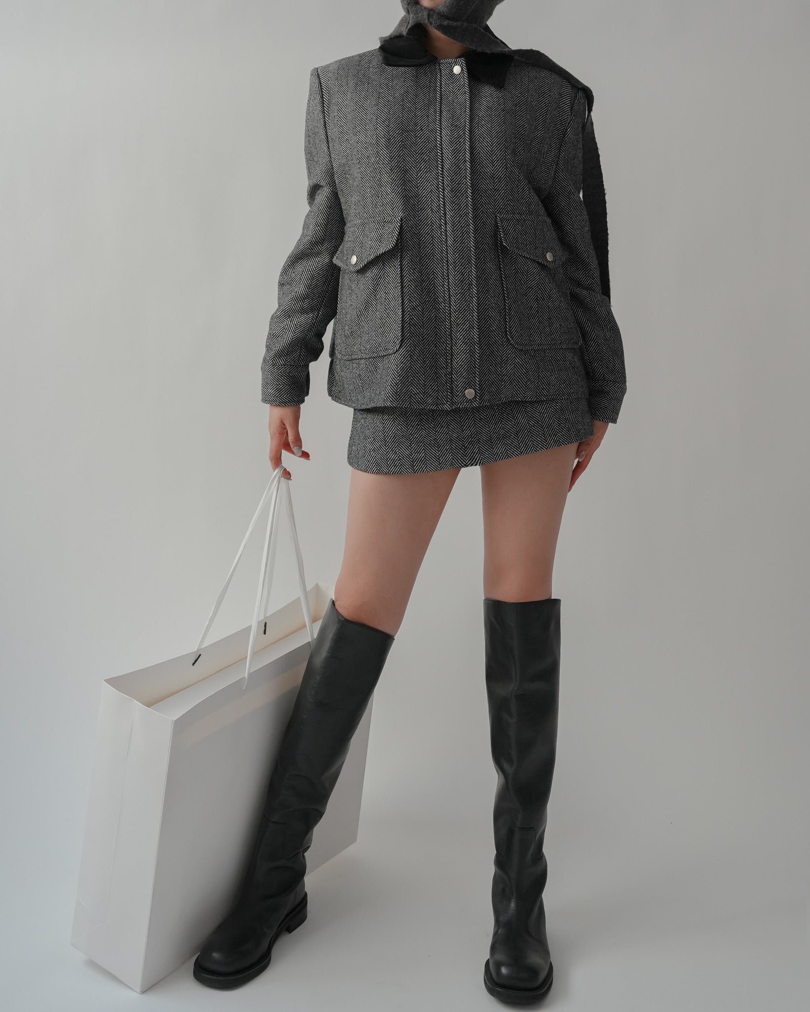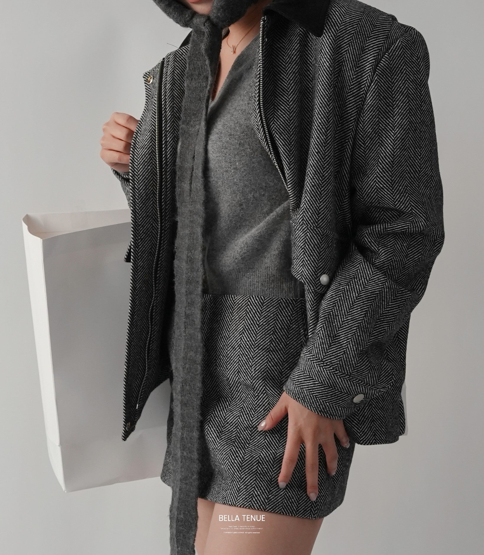 The English Wool Herringbone Set, which can be used in both formal and everyday situations, is an essential item with a luxurious herringbone pattern and wool material that keeps you warm.